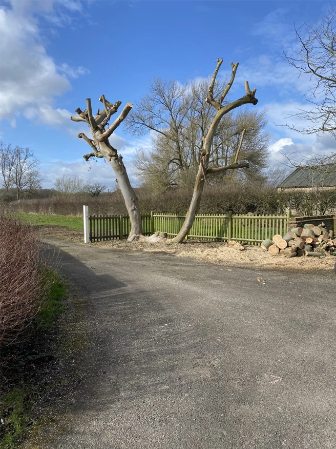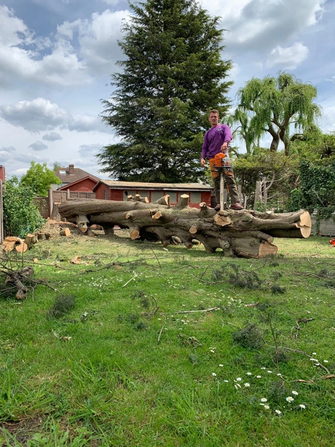 Before and During of lime pollard back to previous cuts. Sutton, Surrey.